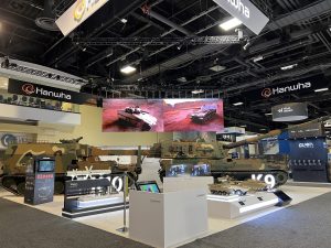 Nach einer erfolgreichen Schießdemonstration mit US-amerikanischer Munition im September präsentiert Hanwha die Panzerhaubitze K9A1 zusammen mit dem gepanzerten Versorgungsfahrzeug K10 auf der Landstreitkräfte-Ausstellung der AUSA.