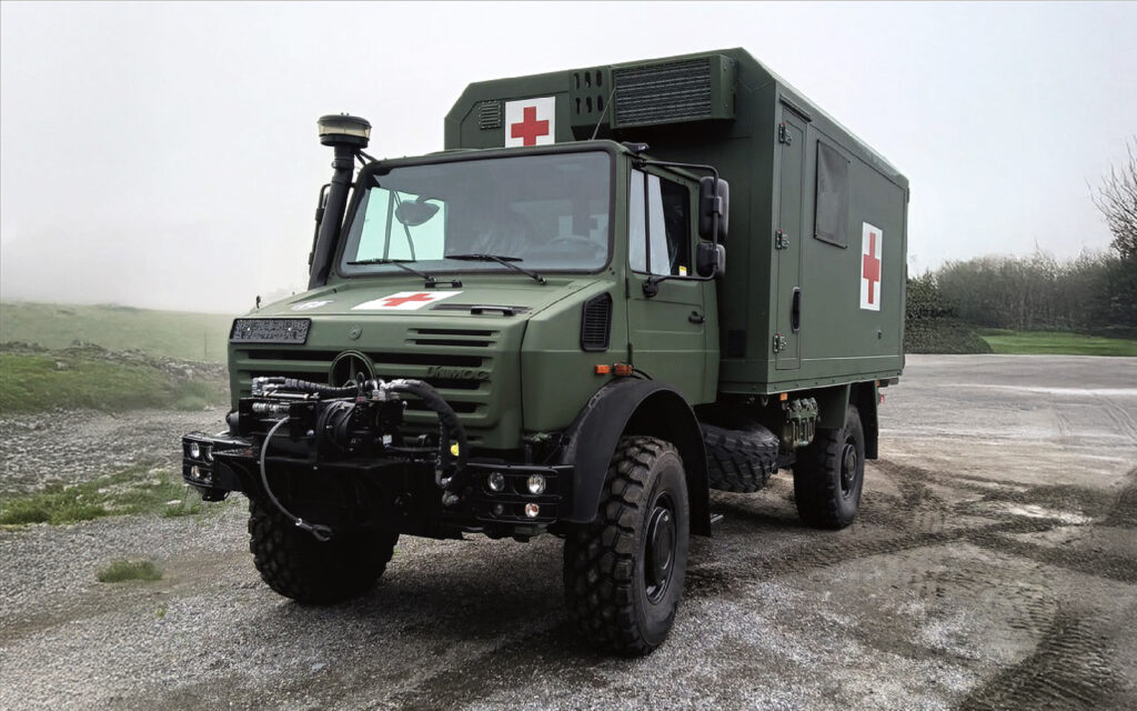 Der Ambulanzaufbau ist für medizinische Ausrüstung nach europäischer Norm EN1789 standardisiert vorbereitet. Fahrzeug und geschultes Personal sind dadurch schnell einsatzbereit. Eine spezielle blendfreie Innenbeleuchtung sorgt für einen gut ausgeleuchteten Arbeitsplatz und kann bei Bedarf in den Tarnlichtmodus geschaltet werden. Über ein eingebautes Gegensprechsystem bleibt das medizinische Team auch während der Fahrt mit dem Fahrer in Kontakt.