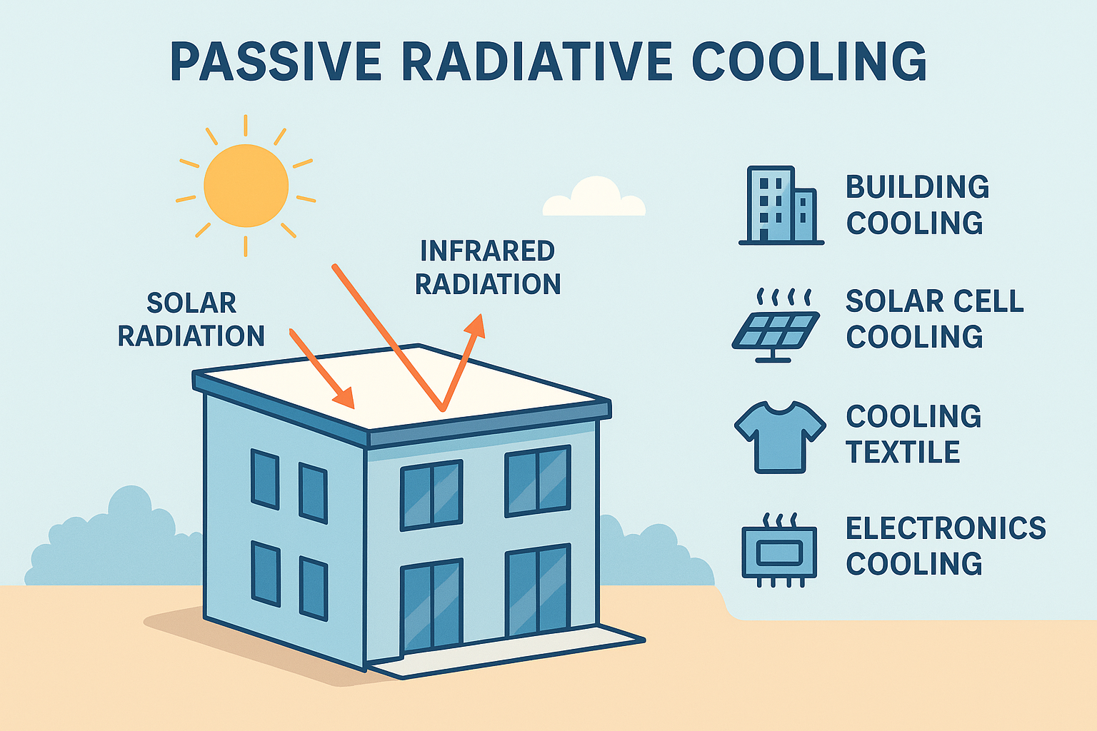Grundsätzlich versteht man unter passiver Strahlungskühlung (Passive Radiative Cooling, PRC) das Auskühlen eines Objekts durch Abgabe von Infrarotstrahlung. Dieses Phänomen ist zwar weitverbreitet, allerdings wenig effizient, da Luftströmungen oder Sonneneinstrahlung einen viel größeren Effekt auf die Temperatur eines Objekts ausüben. Daher wurde passive Strahlungskühlung zunächst für nächtliche Anwendungen erforscht. Analog zur Wärmeabstrahlung der Erde ans kühlere Weltall wurden Materialien dahingehend optimiert, Wellenlängen im sogenannten atmosphärischen Fenster (zwischen 8 und 13 µm) abzustrahlen. In diesem Bereich ist die Strahlungsabsorption der Atmosphäre sehr gering ausgeprägt, sodass die Infrarotstrahlung nahezu ungehindert ins Weltall gelangen kann. Erst vor etwa zehn Jahren gab es einen Durchbruch im Bereich der passiven Strahlungskühlung am Tag.