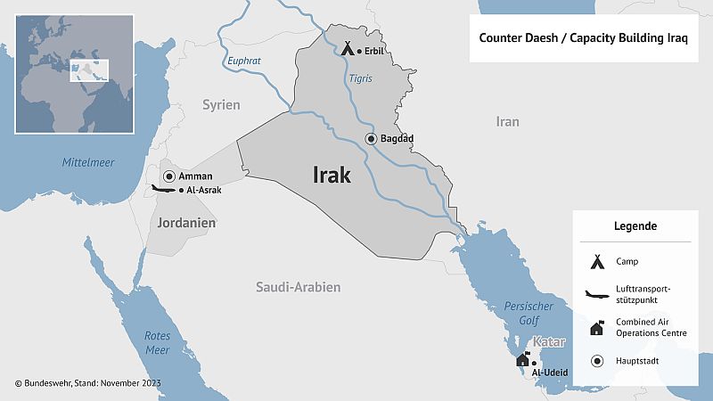 Die deutsche Mission in Mesopotamien besteht aus personellen Beiträgen zur „Operation Inherent Resolve“ (OIR) und zur „NATO Mission Iraq“ (NMI). Die OIR ist der von den USA 2014 initiierte und geführte Kampfeinsatz gegen den IS im Irak und in Syrien. Zur OIR zählten bisher neben den Vereinigten Staaten und Deutschland unter anderem 13 weitere NATO-Staaten sowie Australien, Neuseeland und mehrere Staaten der Arabischen Halbinsel.